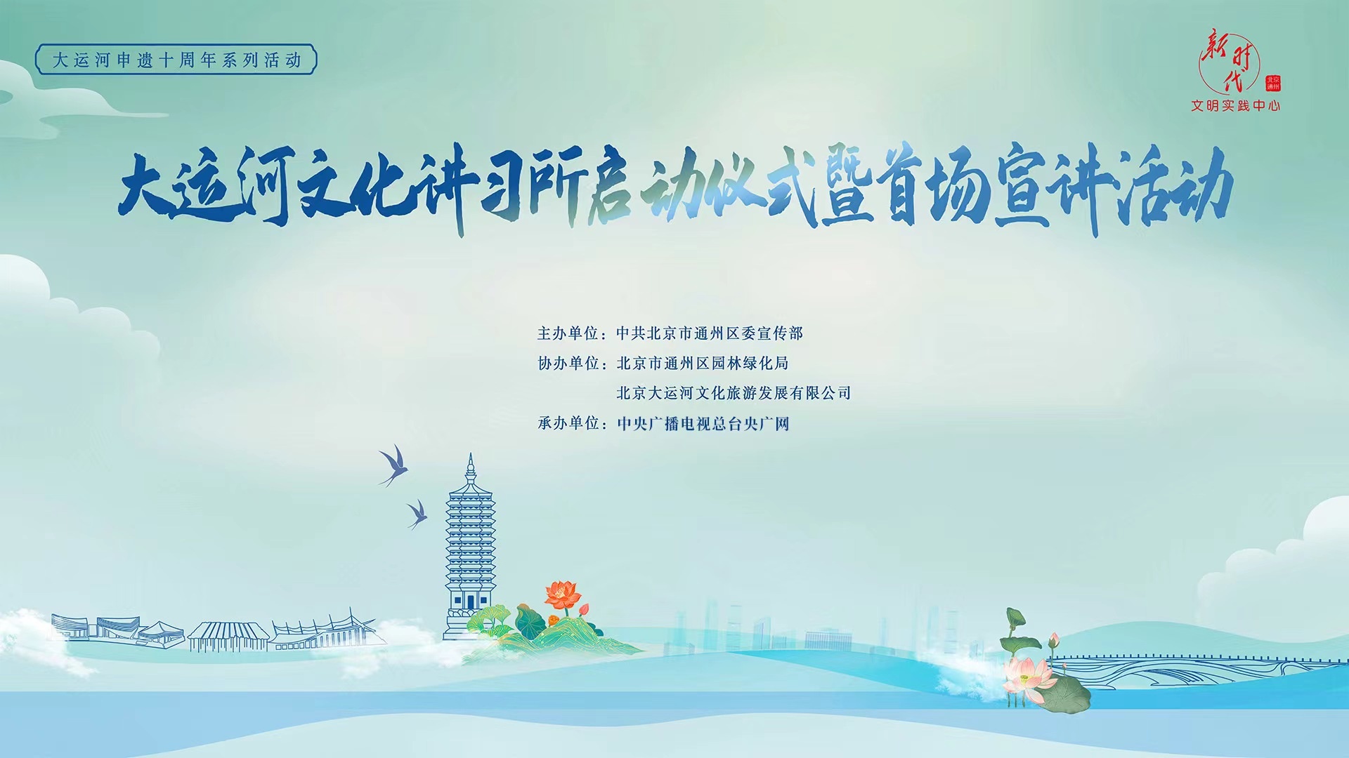 6月20日,大運河文化講習所啟動儀式暨首場宣講活動在北京城市副中心大運河文化旅游景區舉辦。活動由中共北京市通州區委宣傳部主辦,北京市通州區園林綠化局、北京大運河文化旅游發展有限公司協辦。