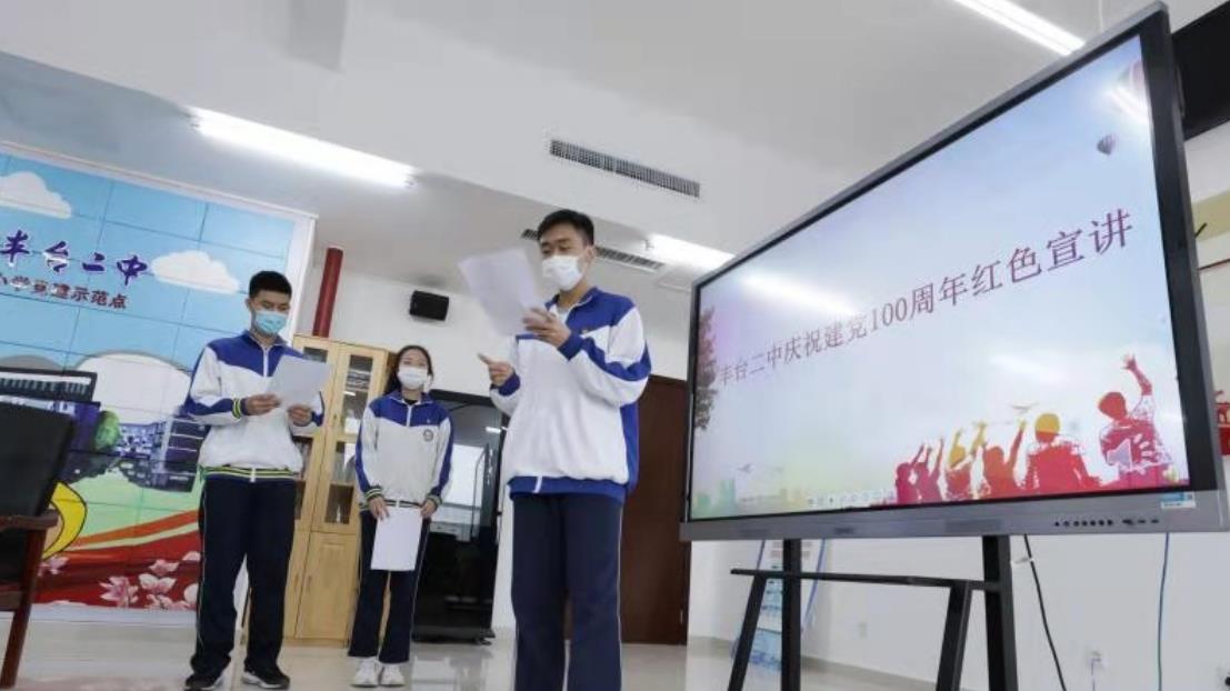 (圖為豐臺二中學生進行建黨百年紅色宣講演練 豐臺區宣傳部供圖 央廣網發)