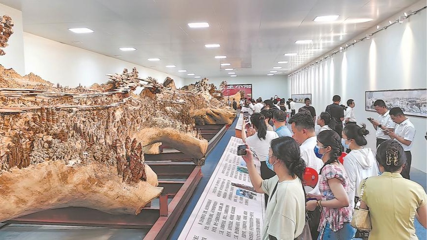 8日上午,莆田市美術館內木香氤氳、人頭攢動,大型木雕《京杭大運河》江南卷正在這里展出。