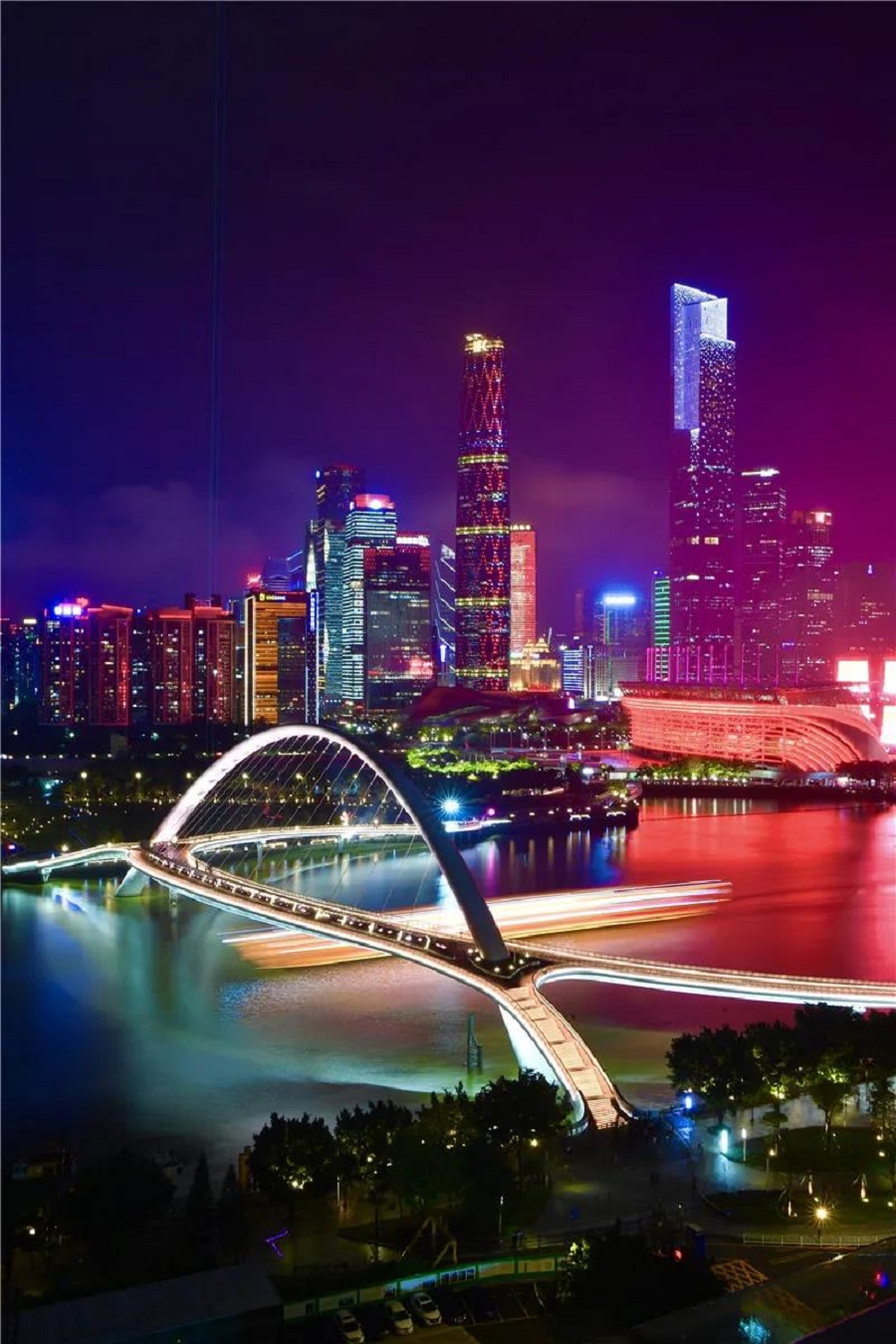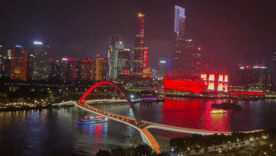 融入廣州中軸線的夜景中,流光溢彩