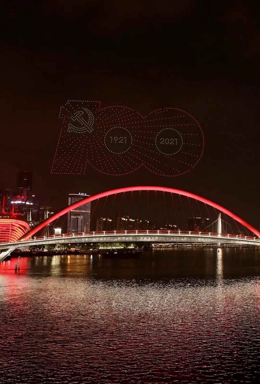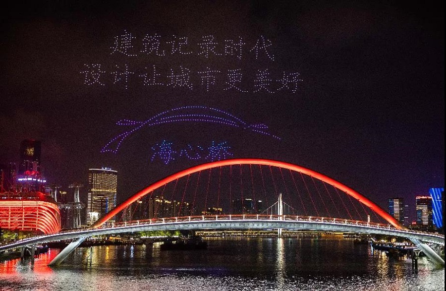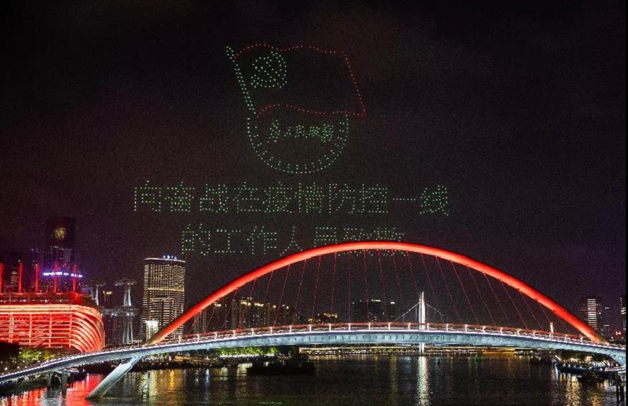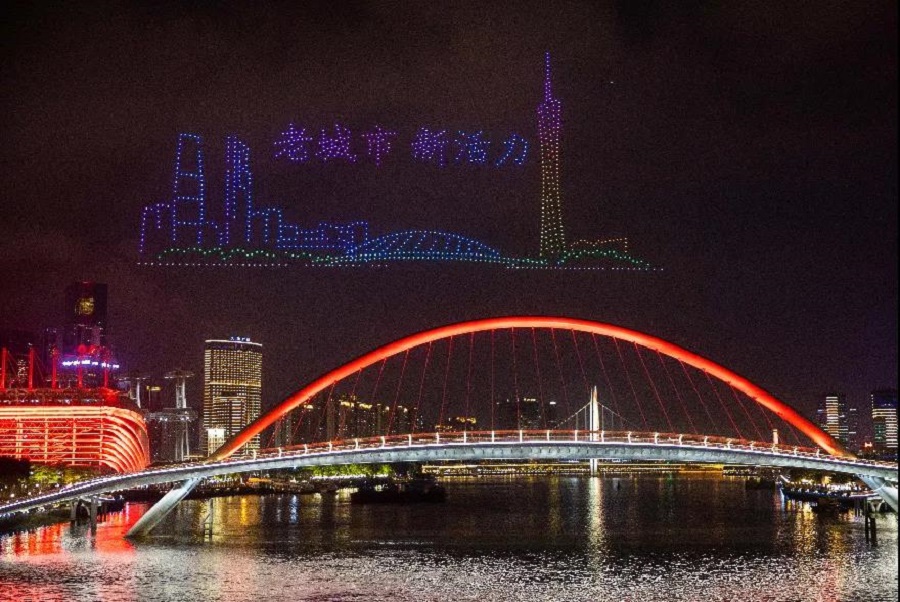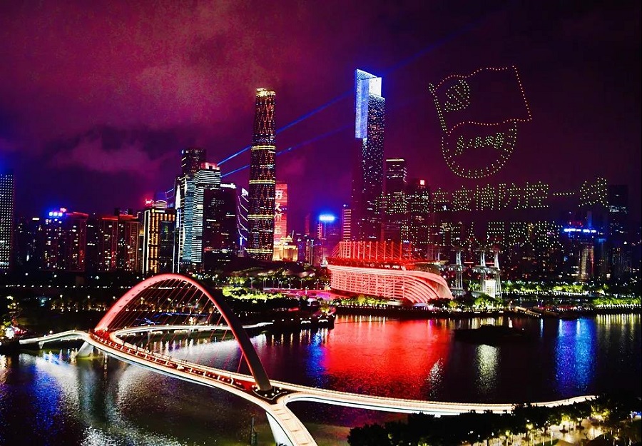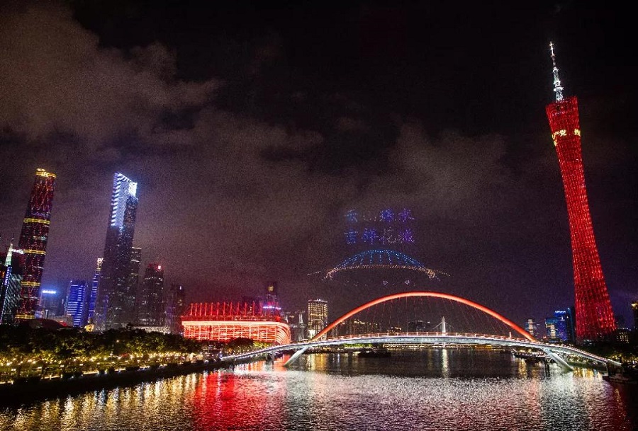 無人機編隊飛行宛如珠江水上的夜明珠