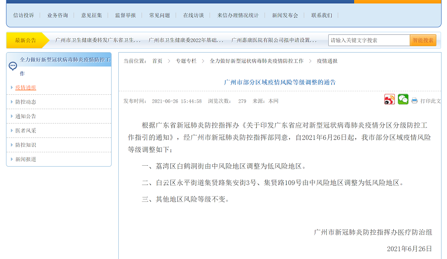 2、荔灣區白鶴洞街由中風險地區調整為低風險地區。