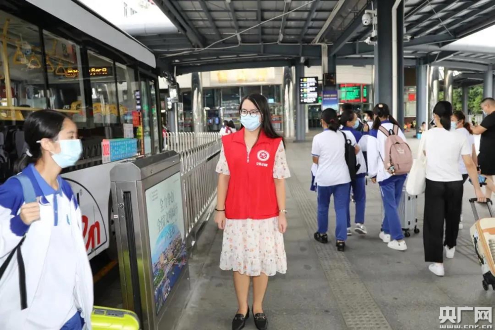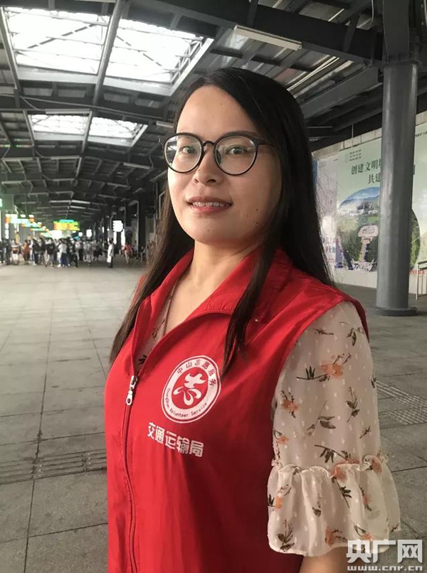 5日早上,根據市民提供的線索,這名熱心的志愿者在中山市汽車總站被找到。此時的她依然在進行著志愿服務,這個名為張藝的姑娘,是中山市交通運輸局組織的一名交通便民志愿者。
