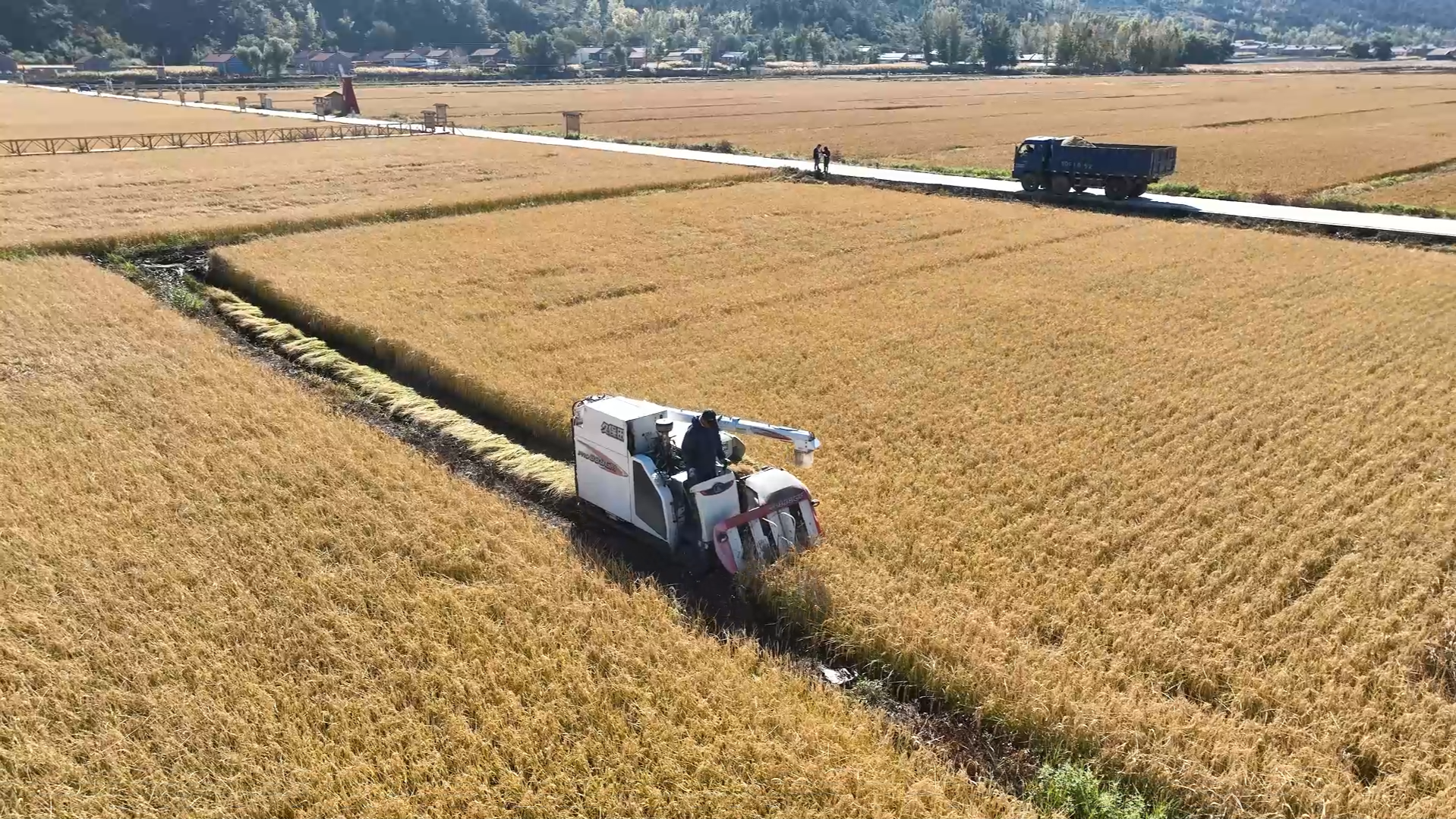 河北隆化:稻谷飄香秋收忙 農機轟響運糧歡