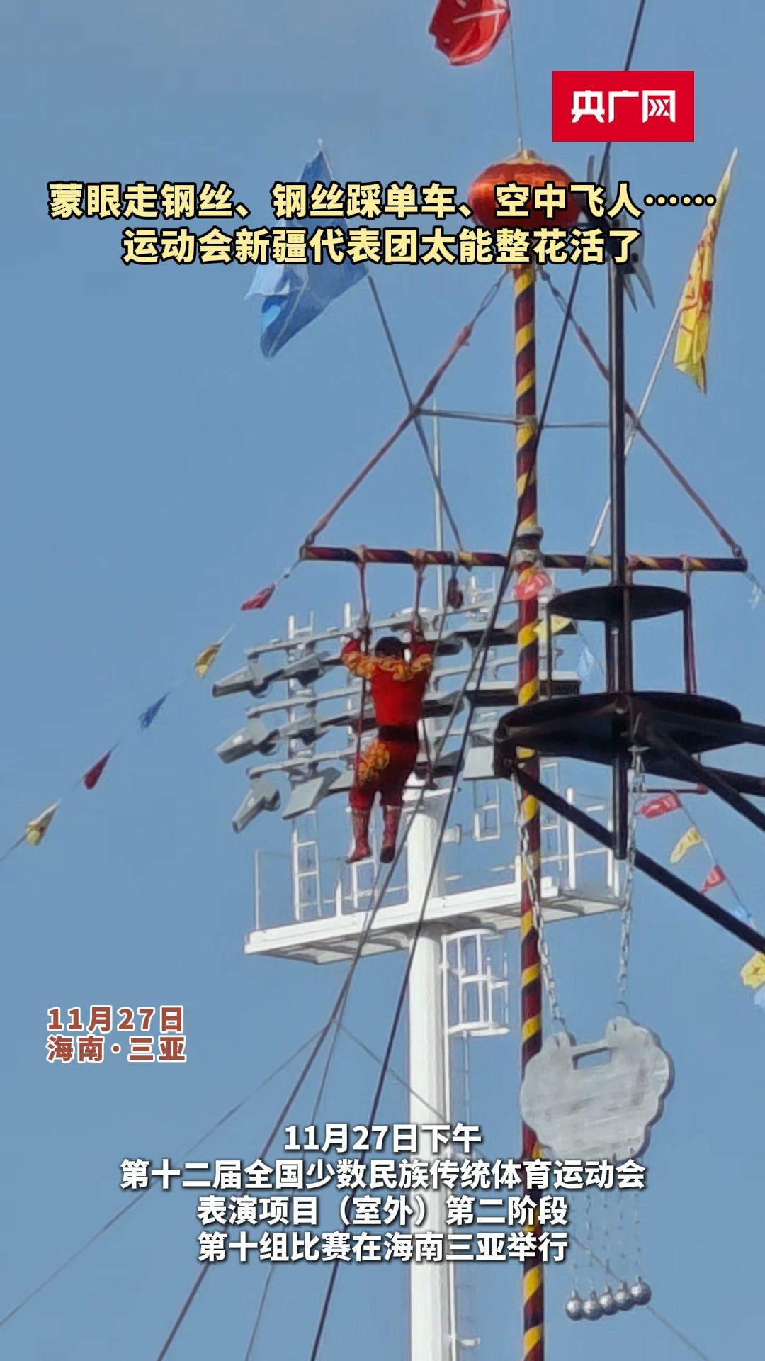 蒙眼走鋼絲、鋼絲踩單車、空中飛人……新疆代表團太能整花活了