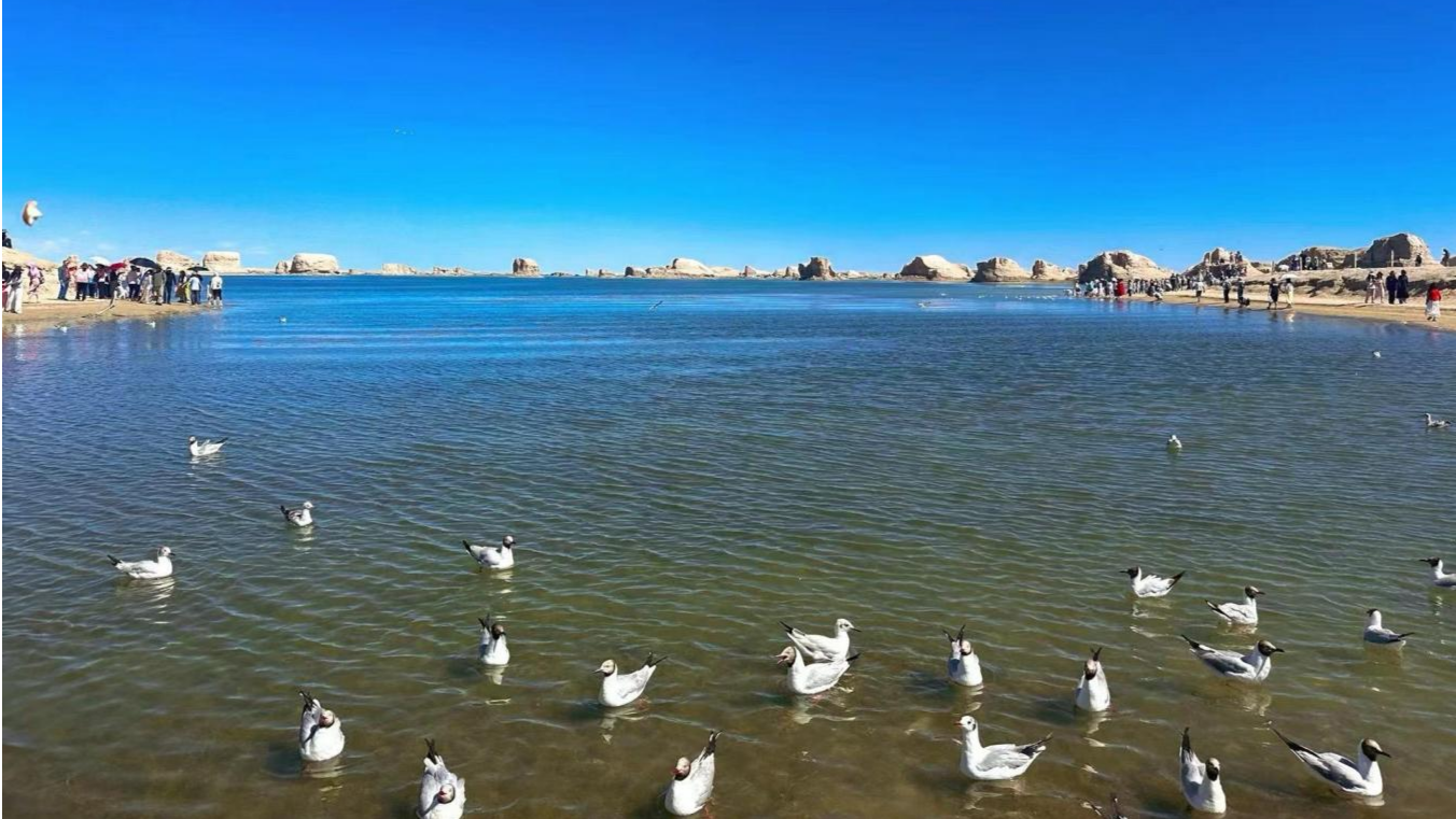 臨近國慶假期,位于青海省海西蒙古族藏族自治州大柴旦的水上雅丹地質公園,再次以其獨特的風貌吸引了眾多游客和攝影愛好者的目光。