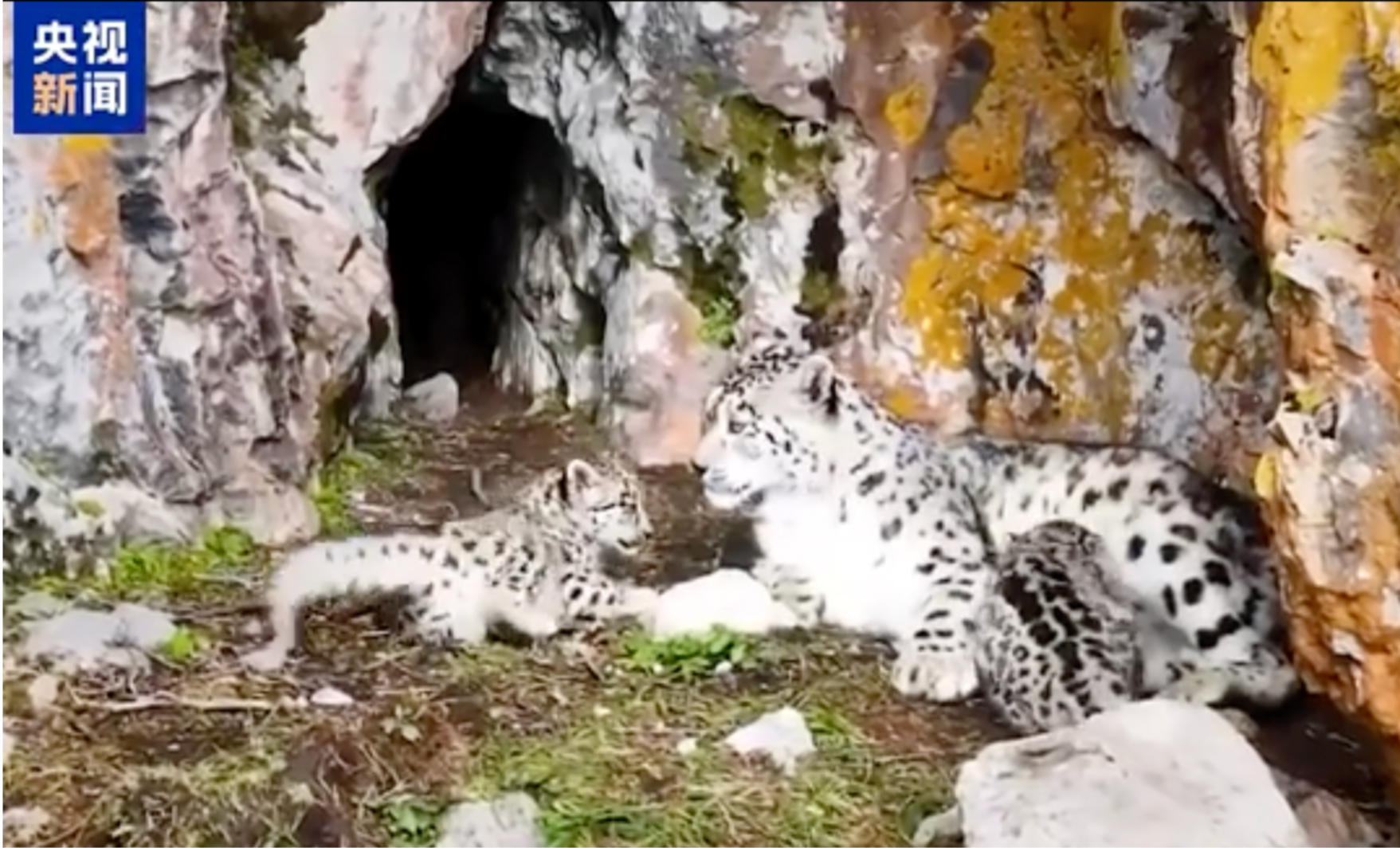 青海省黃南藏族自治州,攝影愛好者拍攝到了一只成年母雪豹帶著兩只幼崽在巖石間活動,場面溫馨動人。