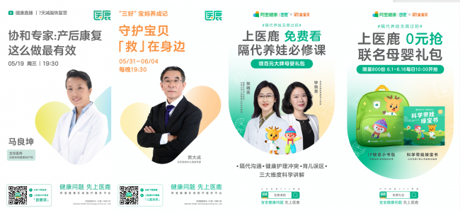 除了詳實的直播課程,從兒童節至“天貓618”活動期間,醫鹿App還有兒科免費義診、三甲兒科醫生24小時咨詢服務,以及醫鹿與金寶貝合作定制的《科學帶娃綠寶書》、少兒保險大禮包等多重福利也同步上線,方便眾多家庭輕松獲取養娃知識。