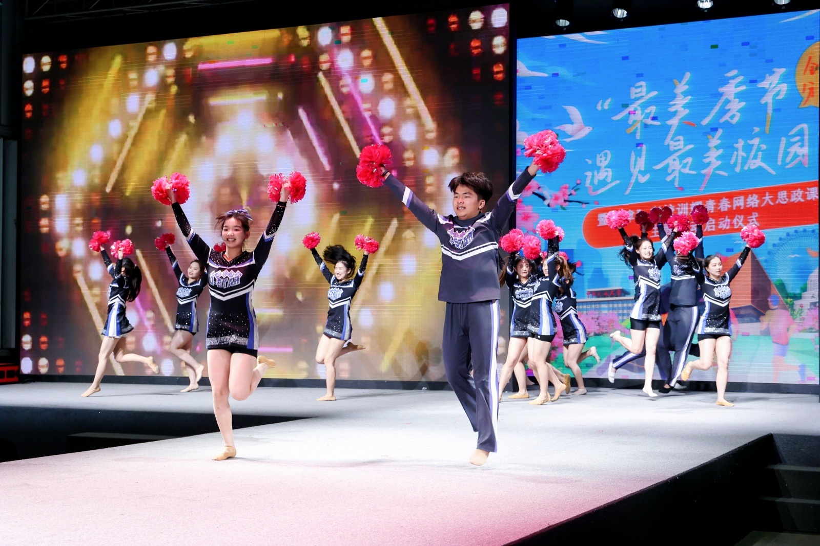 天津體育學院的啦啦操隊員化身活力精靈,表演啦啦操《活力無限》。
