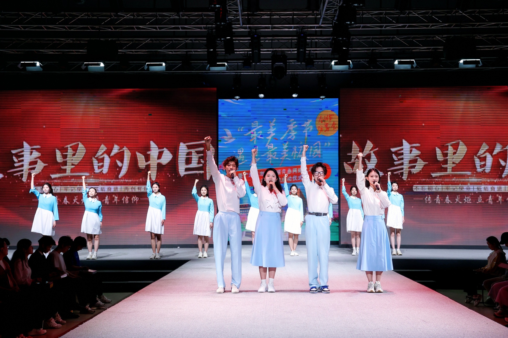 天津師范大學帶來的《故事里的中國》音詩畫表演,將新時代青年心懷熾夢,步履鏗鏘的青春鋒芒淋漓展現。