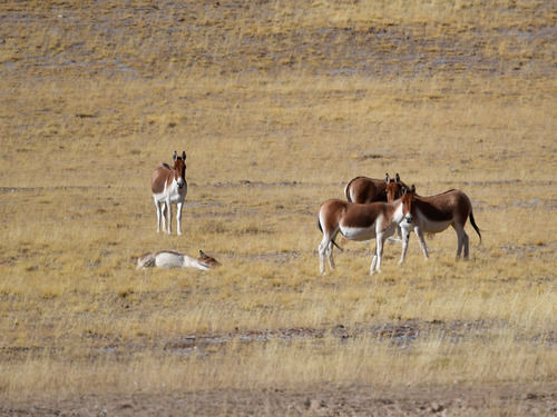 果洛藏族自治州瑪多縣境內拍攝的一群藏野驢。
